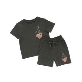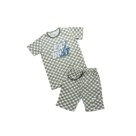 Level up his casual wardrobe with this striking two-piece set. Featuring a trendy all-over sage green and white checkerboard print, this outfit is designed for boys who want to stand out while staying comfortable. The short-sleeve crew neck tee sports a bold "EAT DUST" graphic in blue, giving it a playful, high-energy vibe. Paired with matching ..