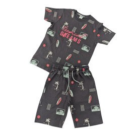 Boys Charcoal Tropical Print Soft Knit Premium Co-Ord Set