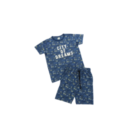Inspire big city vibes with this stylish and comfortable two-piece outfit. Featuring an all-over abstract urban print in shades of navy and slate, this set is designed for kids who are always on the move. The short-sleeve crew neck tee features a bold, centered "CITY OF DREAMS" graphic in crisp white. Paired with matching elastic-waist shorts an..