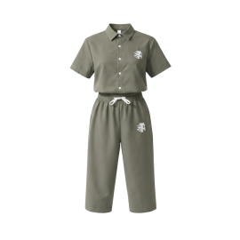 Unisex Olive Green Korean Set / Two-Piece Loungewear