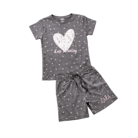 Girls' Charcoal Grey Heart Print T-Shirt and Shorts