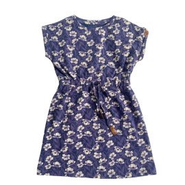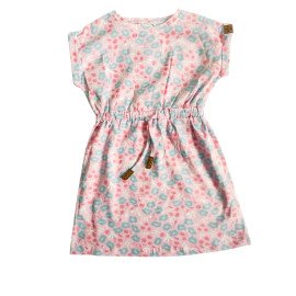 Girls' Cap-Sleeve Soft Knit Floral Drawstring Dress