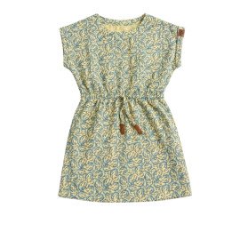 Girls' Cap-Sleeve Drawstring Dress - Abstract Leaf Print