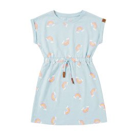 Girls' Cap-Sleeve Drawstring Dress - Rainbow & Cloud Print