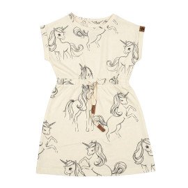 Girls' Cap-Sleeve Drawstring Dress - Unicorn Sketch Print