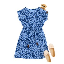 Add a trendy touch to your little girl’s wardrobe with this blue leopard print cap sleeve top. Designed with a comfortable round neck and stylish cap sleeves, this top features an adjustable drawstring waist for a perfect fit. Made from soft, breathable fabric, it is ideal for daily wear, outings, playtime, and casual occasions. The modern animal p..