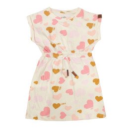Girls' Cap-Sleeve Drawstring Dress - Bold Heart Print