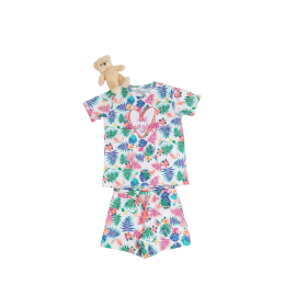 Bring a splash of tropical paradise to her bedtime with this vibrant "Be Amazing" 2-Piece Coord Set. The set features a lively all-over print of pink flamingos, exotic palm leaves, and colorful hibiscus flowers. The top is centered with a beautiful heart graphic framing the inspiring "Be Amazing" message. Completed with matching shorts that feature..