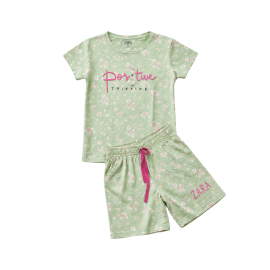 Girls' Sage Green Floral T-Shirt and Shorts "Positive Thinking" Coord Set