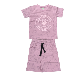 Kids' Lilac Dog Print Cotton T-Shirt & Shorts Set